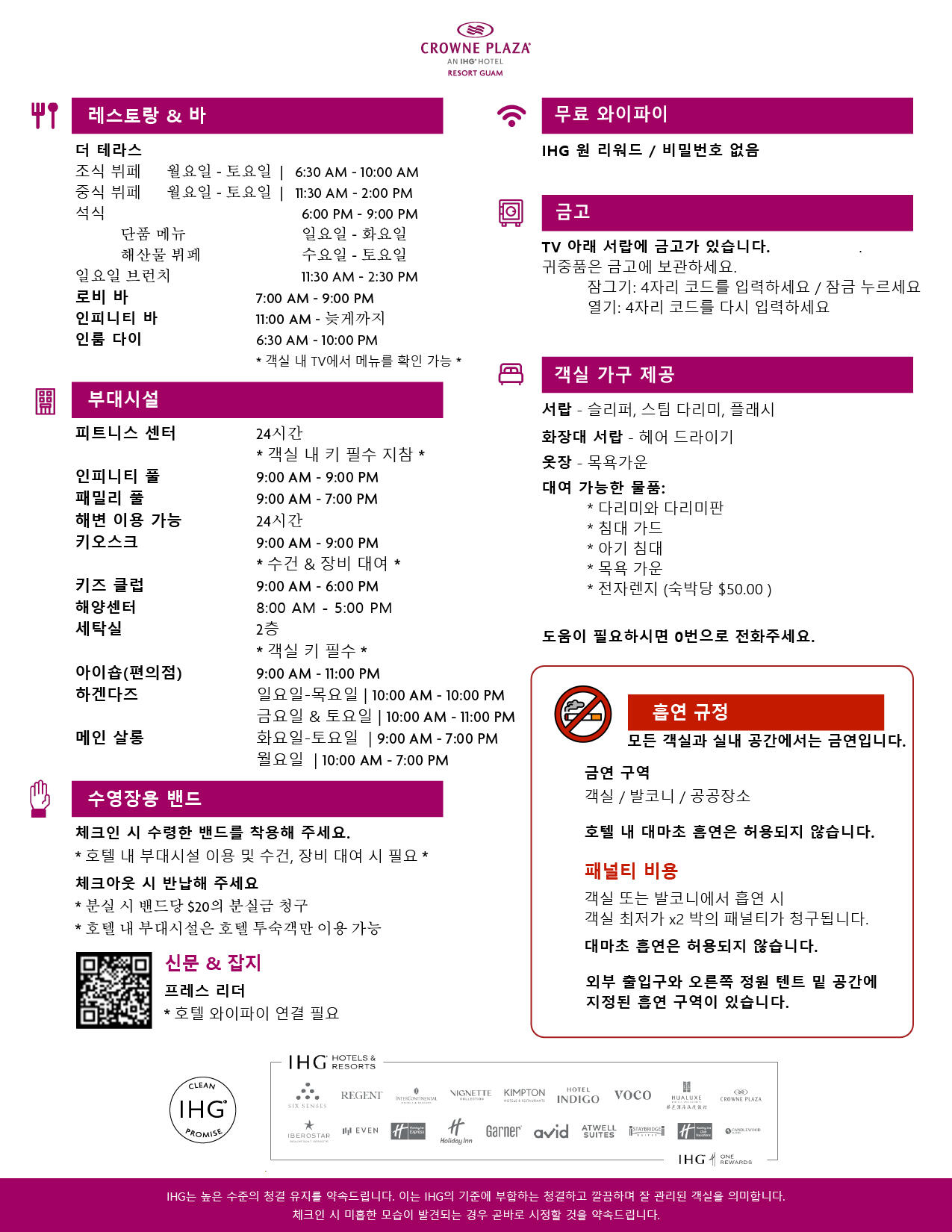 | 조기 체크인 (이용 가능 시) | 조기 체크인 요청 시 고객님의 객실이 신속히 준비될 수 있도록 최선을 다하겠습니다 |